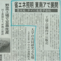 TV放送情報 志、情熱企業 RKB毎日放送 2013年8月31日 ぐっ!ジョブ TVQ 2013年2月2日 北九州 きらめきカンパニー 2012年10月12日 NHKニュース 2012年2月2日 NEWS5ちゃん 2011年6月15日 エコスイッチ 2011年2月22日 新聞・雑誌掲載情報 バンコク週報 2014年10月11日 ふくおか経済 記事掲載 2013年10月1日 西日本新聞 記事掲載 2013年9月12日 アジア・マーケットレビュー 2013年9月1日 東洋経済(別冊)記事掲載 2013年2月10日 朝日新聞 記事掲載 2013年2月5日 日刊工業新聞 記事掲載 2013年1月31日 豊光社、タイに生産子会社 2012年12月12日 週刊ビル経営 記事掲載 2012年11月5日 経営者の四季 2012年10月号 2012年9月7日 読売新聞 記事掲載 2012年6月15日 イプロス製造業 記事掲載 2012年4月10日 読売新聞ONLINE 記事掲載 2012年3月24日 西日本新聞 記事掲載 2012年2月25日 読売新聞 記事掲載 2012年2月24日 経済界 記事掲載 2012年2月7日 月刊コロンブス 記事掲載 2012年1月号 西日本新聞 記事掲載 2011年10月12日 ジェトロセンサー 掲載 2011年10月 東経ビジネス 掲載 2011年秋号 朝日新聞 記事掲載 2011年9月28日 西日本新聞 記事掲載 2011年9月16日 東経情報 九州版 記事掲載 2011年8月26日 ふくおか経済 9月号 記事掲載 2011年8月26日 帝国ニュース 九州版 掲載 2011年8月26日 北商News7月号 記事掲載 2011年7月 電波新聞 記事掲載 2011年3月18日 日経新聞 記事掲載 2010年11月16日 北九州エコプレミアム掲載 2010年10月7日 帝国ニュース 記事掲載 2010年10月4日 月刊NEOS 記事掲載 2010年10月1日 東経トピックス 記事掲載 2010年8月2日 半導体産業新聞 記事掲載 2010年7月 環境ビジネス.jp 記事掲載 2010年7月 CCI 広告掲載 2010年6月18日 Asahi.com 記事掲載 2010年6月10日 日刊工業新聞 記事掲載 2010年6月10日 インプレス 家電ウォッチ 記事掲載 2010年4月4日